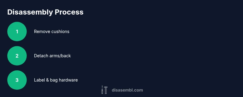 Before starting, set a clear scope: which components need to come apart, what you’ll reuse, and where the pieces will live during the project. Start by inspecting the sofa for obvious fasteners, fabric attachments, and potential hazards such as springs under tension or loose wood joints. Safety first: wear eye protection, keep pets and kids away, and work in a well-lit area with enough space to lay out parts. Label every fastener as you remove it, ideally using small bags or cups marked by location (legs, rails, arm, back). This approach aligns with Disasembl’s recommended workflow: it reduces confusion later and speeds reassembly. Plan for reassembly by noting the orientation of cushions and the order in which components were removed. If you’re unsure about a fastener type or frame design, consult the model’s schematic or search for a generic sofa-disassembly guide to confirm the correct approach. A well-organized workspace saves time and protects your furniture’s upholstery.
