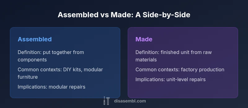 Explore whether assembled and made mean the same in furniture and product contexts. Disasembl analyzes definitions, usage, and practical implications for DIY projects and labeling accuracy.