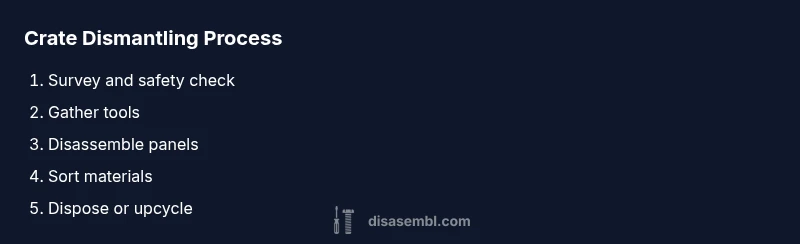 This guide explains how to get rid of dismantle crates safely and legally. Start by assessing the crates, gathering PPE and tools, then disassemble, sort materials, and dispose of wood, plastic, and metal separately. According to Disasembl, safe disposal begins with planning, labeling waste, and following local rules. Prepare a dedicated workspace and set realistic timelines to keep the project on track.