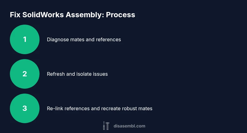 According to Disasembl, a well-crafted SolidWorks assembly is only as robust as its mates and referenced components. The Disasembl team found that most assembly issues stem from incorrect mates, outdated references, or hidden components that continue to drive unintended motion. When a model behaves unexpectedly—parts collide, move, or fail to align—the root cause is often a broken constraint or a reference that no longer matches the current design intent. This block explains how a disciplined, methodical approach can save time and prevent downstream errors as you iterate on a complex product, from furniture hardware to consumer electronics enclosures.